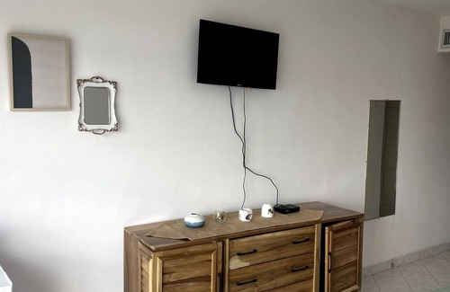 Large sun-filled bedroom with a balcony that features an excellent water view! Completely furnished room, has A/C, closet w/ storage safe, TV & queen sized bed, Hi-Speed WI-FI internet included. In heart of Sosua 5 min walk away from Sosua beach, Playa Alicia beach & several bars. Famous club Rumba is 10 min walk away. Famous club Playa Chiquita casino is 5 min drive away easy to grab a motorcycle taxi to go. Airport 15 mins away. Breakfast included. Excellent location for people with no car