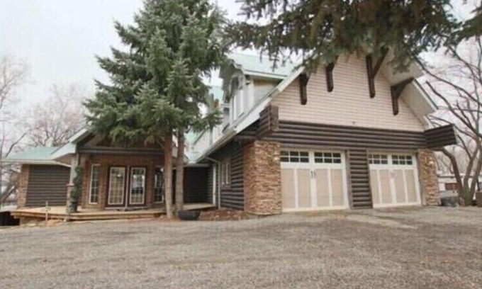 Log cabin with plenty of room for large gatherings. Open concept throughout the main floor and upstairs. Multiple seating areas throughout to accomodate large parties. Plenty of natural light throughout the entire house. Air conditioning, log burning fireplace, electric fireplace, gym, sauna, tanning bed, propane fireplace, in floor heat, fully equipped kitchen, golf course near by, convenience store.