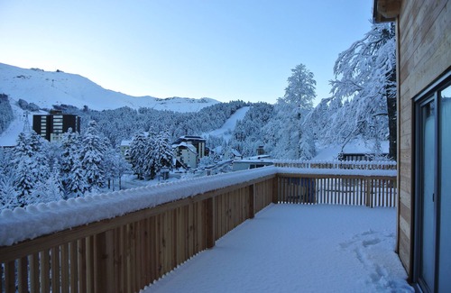 Large terrace facing the heart of the resort and the mountains. Exceptional view.