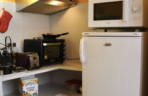 Very large studio of 35 m2 with a double bed 160x200 and a sofa bed (BZ) of 140x190 unfoldable in seconds, a round table, 4 chairs, a dresser, a flat screen TV with TNT, a kitchen equipped with 1 fridge, 1 microwave, 2 electric hotplates, 1 oven, 1 extractor hood, 1 Nespresso coffee machine, 1 toaster, a bathroom with shower, 1 separate toilet and a parking space in front of the residence.