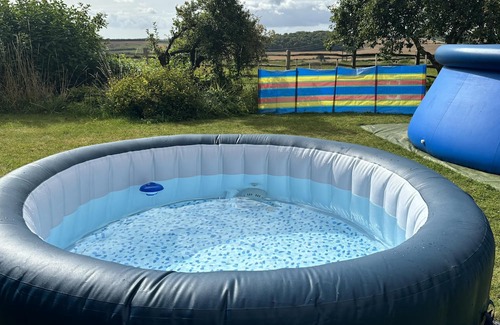 There is a small pop up campsite that operates in the field behind. It is quiet and well managed and your back garden is sheltered by hedgerows and trees and is very private.