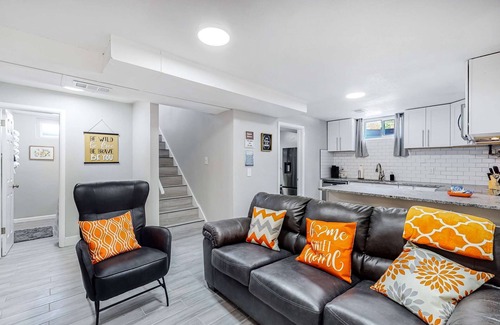 This home has been uniquely remodeled to allow for 2 separate units for affordable stays. However, this listing is for the entire house where guests will have access to both the main level and the basement. Guests will enter through the front door and receive lockbox code to the basement door.