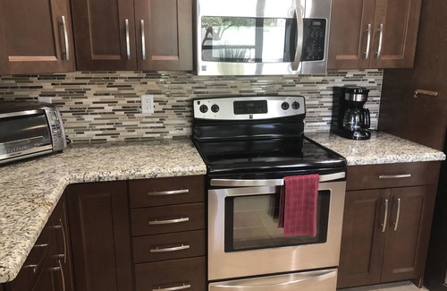 This private beautifully remodeled single family home features 3 bedrooms upstairs, with a Jack and Jill bathroom between bedrooms #2 and #3. Bedroom 2 holds a twin over twin bunk bed, with a third twin trundle bed beneath. Bring the kids, because there are plenty of kids toys and books available to play with! Bedroom 3 features a queen sized bed with a cooling gel memory foam mattress. The master bedroom has a king sized bed (also with cooling gel memory foam mattress), a large walk in closet (stocked with a pack and play and blow up twin mattress if needed) and a large bathroom with separate tub and shower. All rooms are equipped with room darkening shades for a restful night's sleep.