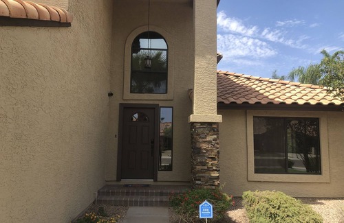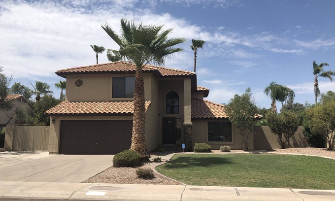 Outside we have a private driveway with enough parking for 3, and garage parking for 2. The back yard features a large private pool with attached private spa, fully fenced from the rest of the grassy yard. Have fun in our beautiful Arizona sun with a game of ladder ball, corn hole, or washer toss while grilling up dinner on the BBQ.