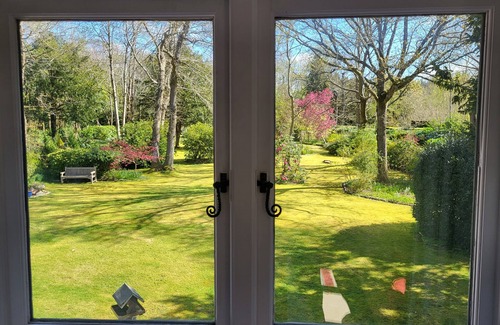 The house sits on 1.3 acres of managed woodland and is perfect for everyone to enjoy including dogs and children, as it is secure. There are various sitting and dining areas in the garden to enjoy the sunshine at all times of the day. There is a gas BBQ provided for guests use. It is well looked after and cleaned after every guest.
