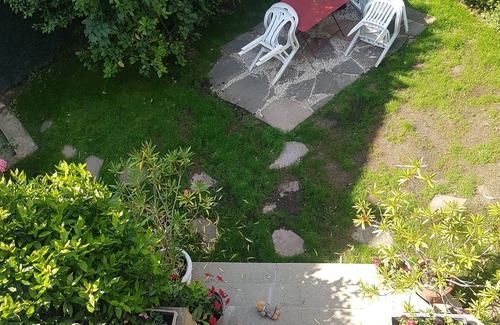 In addition, the house has a garage where you can park your car, a garden with table, chairs and charcoal barbecue, and a laundry room with washing machine in the basement.