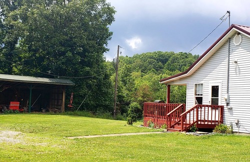 Surrounded by forest yet boasts a beautiful view of mountain ridges and valleys. Very large yard both in the front and back that's perfect for playing outdoor games, yoga, sunbathing. Begin your mornings on the porch swing enjoying your coffee, watching the cows graze and the many different birds waking up to the day. Miles of hiking trails throughout our 300-acre homestead offer a variety of views from different elevations. Grilling is a pleasure on the large, covered deck. Extra Large family room gives opportunity for game or movie night while enjoying the wood burning stove in the autumn and winter months.