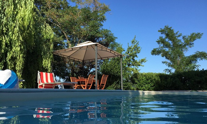 Large, just renovated country house, with with private road, parcking for up to 5 cars, gazebo, large pool 6 x14m and 10,000sqm wooded garden with sea view!