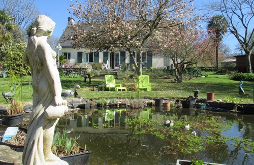 The House is located in the hilly countryside 22 km north of Lorient, which can be reached in less than half an hour by car. It has a large room, kitchen living room of 65 m² and a garden of more than 5000 m² containing a large pool of aquatic plants and goldfish. This garden surrounding the whole house is planted with twenty species of trees and decorated with a dozen large flower beds and flowering shrubs.