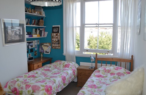 Family home overlooking communal square. Nearest tube is Stamford Brook (3 minutes walk), you can be at Natural History Museum (and many more) in less than 30 minutes. Thames is 5 minutes walk. Interior is elegant but not precious and is well-equipped for families (including bicycles, table tennis table, PS3 etc). Sleeping arrangements: On the second floor there is one large double bedroom, and one single room (with a bed that can become a double). On the top floor there is one twin room (two single beds), a small single room, and a double room. Whole house is let per week. Loads of nearby restaurants and parks. Lots to do. Sleeps 6-8.