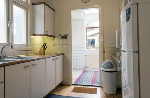 A large comfortable cottage of 167 m², in a quiet street with shops and the beach nearby. The apartment has a balcony, terraces and a large enclosed garden. The garden is child-friendly with u. a. Sandpit and toys. You can use the bicycles and the handcart. The rent includes three parking tickets for cars. The apartment has 4 toilets and 3 showers. All bedrooms have running cold and warm water. Some of the electricity is generated by solar systems and solar panels. The apartment has a combination boiler for central heating. The house has a separate living room, dining room and kitchen. The rental price includes: entry ticket for the dunes and other nature reserves in North Holland, park ticket, water, electricity and gas, some bicycles (possibly with a child seat), own telephone, own washing machine, and bed linen. There is a lot of information in the house about hiking, biking and other leisure activities. Additional information: The large garden is closed by a gate in the alley to the street side. Small children cannot therefore get onto the street directly.