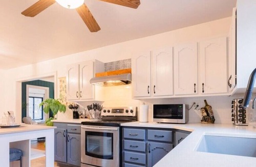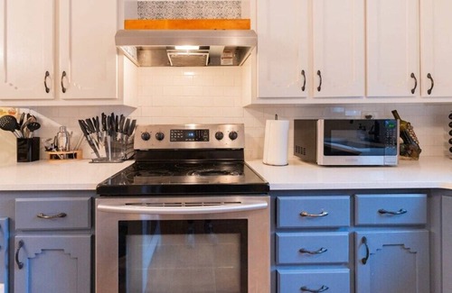 Now for the house! Habitude Stays is known for providing a "Home Away from Home" experience for our guests, and this level of hospitality obviously starts in the kitchen! We've got everything you need to whip up some awesome meals – think full spice rack, oil & vinegar, and even the basics like salt and pepper. But for your caffeine addicts - whether you're a Keurig fan or love drip coffee, we've got you covered, complete with coffee grounds/pods and add-ins. (oh, and Tea as well!). Last, we've got you covered for the kiddos... kid friendly plates and utensils as well as a high chair are available for our guests to use.
