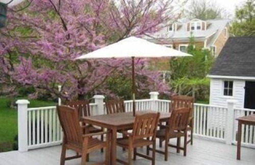 The Idlewild is set back from a quiet, tree-lined road that runs parallel to Manomet Beach and the ocean. Large, turn of the century homes and well-kept summer cottages dot the neighborhood. Beautiful sunflowers, hydrangeas, lilacs,hostas, and stately 100 year old cedar trees surround our property. The Idlewild also has a large vegetable and herb garden and guests are always welcome to gather fresh basil, tomatoes, rosemary, chives, and cilantro for your appetizers and cookouts! We strive to make our grounds reflect the peaceful tranquility our guests feel upon arrival to rest and truly get away from it all.