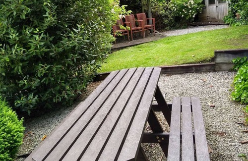 This accommodation has extensive and secluded, staggered gardens with a heated summer house, patio area, several decked platforms and two separate lawns.