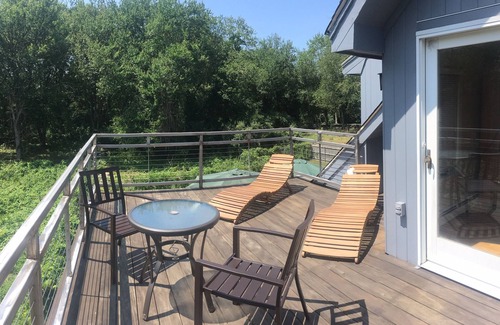 Located on a private 2 acre setting yet only about one mile from the beach, the house is complete with plenty of amenities including bikes, kayaks, gas grill, fire pit and firewood, beach chairs, boogie boards and beach pass.