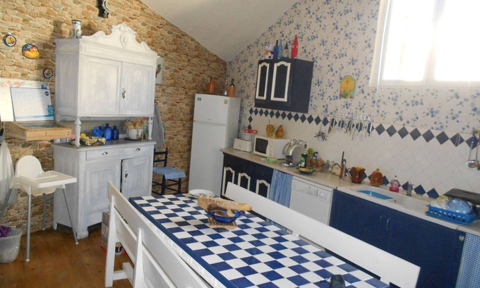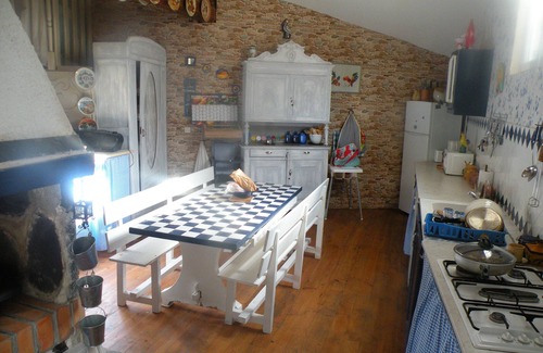 Large stone village house on 3 levels. It is an old barn fully equipped by us. Lots of character. 6 bedrooms 15 beds. 1 shower room + WC 1 bathroom + WC, 1 large fully equipped kitchen, 2 lounges, 1 dining room, 1 enclosed courtyard with BBQ. 1 fireplace + 1 wood stove. The beds are made upon arrival. Ideal for large families, groups of friends who love nature, fresh air and calm.