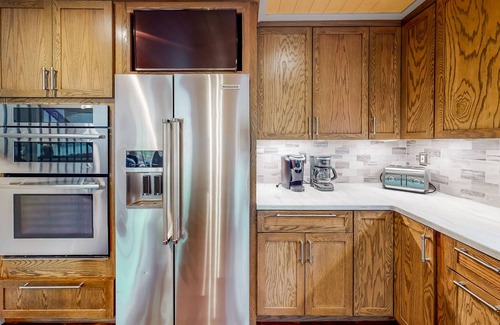 A fully equipped kitchen has everything you’ll need to prepare delicious meals. Find ample space to dine together between a kitchen island, breakfast nook, and a dining area with banquette seating. The well-appointed bedrooms are spread across three floors. Highlights include a primary suite with a private balcony (two additional bedrooms also have a private balcony) and a luxe jetted tub.