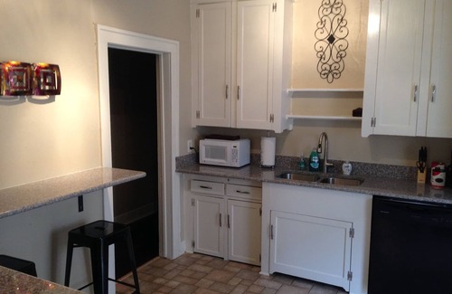 Beautiful contemporary mid 1930s house with modern interior. 1 bedroom with King size bed, wall closet, Washer and Dryer in unit, Full Kitchen and full/queen size sleeper sofa in living room. Pets are always welcome to play in the spacious privately fenced in back yard with picnic table. Large front raised patio that overlooks the neighborhood and fireworks from Will Rodgers Stadium/arena most weekends.