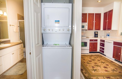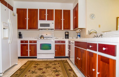 This condo is a spacious 1,400 square foot air conditioned condo with oversized windows and two lanais to help guests enjoy the surrounding beauty of the resort. Master and guest bedrooms with respective bathrooms provide privacy, while plenty of closet space and a washer and dryer accommodate visitors with extended stays. The two twin beds in the guest bedroom can be merged to make one king bed. The living room sofa also converts to a hide a bed. Everything you need is in the kitchen for preparing and eating all your meals. Enjoy WiFi, two cable TVs (living room and master bedroom), stereo, DVD player, books and beach accessories kept for all guests. A ground floor unit with no stairs makes the condo easy to access.