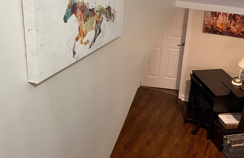 Private, roomy basement with its own entrance has a full kitchen and room to sleep 5! Brand new queen-sized pull out couch and chair-and-a-half that pulls out into a twin in the main area, both with Lucid mattress pads for an extra comfortable night's sleep. Brand-new 55' flat screen TV, as well. Bedroom features futon that becomes a comfortable queen-sized bed, as well as an office space with wi-fi and use of a printer. Located in a historic home in the heart of St. Matthews