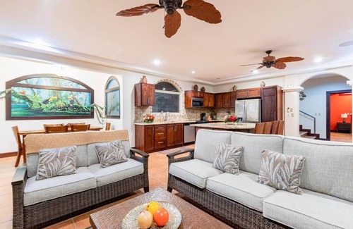 This magnificent, well-appointed, 5 bedroom-5.5 bathroom house in the gated community of Hermosa Heights, sleeps 12. Beautiful Hermosa Beach is spread out before you, which offers snorkeling, fishing, kayaking and surfing tours that leave right from the beach. Local adventure activities for the whole family, including zip-line canopy tours above the tropical forest, estuary excursions, horseback riding, volcanoes, hot springs and waterfalls are all within an hours drive. The BBQ Grill located poolside along with a well appointed outdoor dining set allow you to enjoy the best of dining alfresco, Should you wish to hire someone to prepare local delicacies in the gourmet kitchen or eat out at one of the many excellent restaurants in town or on the beach, feel free to contact our in-house concierge to assist with your culinary wishes. Make Casa Ilan Ilan your next destination for a wonderful, relaxing vacation experience.
