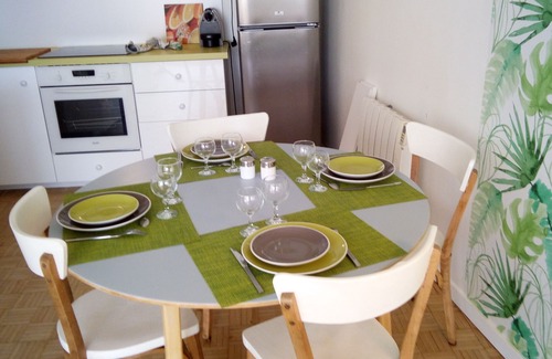 The room of 12 m2 with window has 2 bed of 90 cm with bedding upscale. They can be put together in a real big bed on request. The living room of 30m2 gives on a terrace of 8 m2 it is equipped with a desk with its chair, a sofa bed in leather, a television of 127cm, a corner cooks with fridge-freezer, plate of induction, microwave, oven, toaster, coffee maker (nespresso and classic), dishwasher and a dining table with 4 chairs. The bathroom includes a sink, a bathtub and a large shower. The WC is separated. Space to store your luggage where is also the maintenance equipment and a washing machine. You can eat on the terrace (table and 4 chairs) and in the basement a parking space is reserved for you. Non smoking accommodation except on the balcony. No animals.
