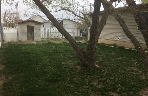 This home is a 5 bedroom, 2 bath home with nice kitchen, living room, dining room attached to the TV room, laundry facilities, and large fenced yard. The perfect home for families who want to stay together. It has a spacious back yard to set up tables and chairs to get ready for your party. Several fold up tables and 20 folding chairs are available. The kitchen is located just off the back porch which makes it very convenient to bring food in and out of the backyard. The whole family can stay here and enjoy a family reunion setting while enjoying the quaintness of the little town of Manti Utah located in Sanpete County. You can enjoy the festivities such as Scandinavian Festival, Heritage Days, Mormon Miracle Pageant, Independence day, Pioneer day and Sanpete County Fair. Its ideal for those ATV groups that come in to explore the Manti La-Sal Mountains and families who come to attend a wedding in the beautiful Manti Temple can stay together as a group.