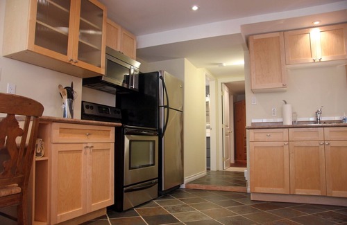Our home offers a renovated, fully furnished, large suite that provides our guests with comfortable, self-contained accommodations. Guests are treated to a private entrance accessed from the back of the property through a south facing, beautifully landscaped and fully fenced back yard which is also shared with the Owners who live above on the main floor. Parking is available in front of the house.