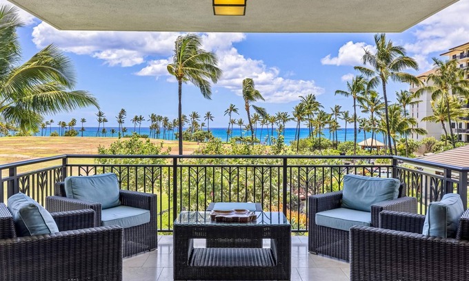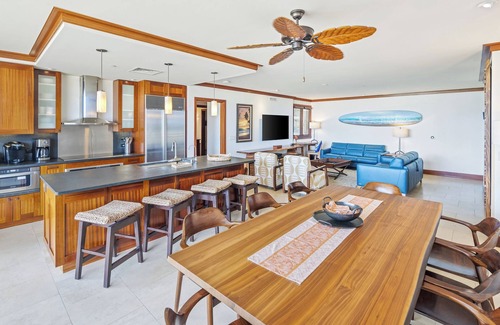 The highlight is the spacious and serene lanai with its captivating views of the Pacific Ocean and beautifully manicured grounds. Lounge in style on cozy furniture as you soak in the warmth of the sun or savor your favorite beverage. Nestled on the third floor overlooking the koi pond is how this villa came to be called "Hale Koi" which translates to "koi house".
