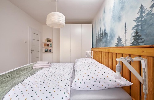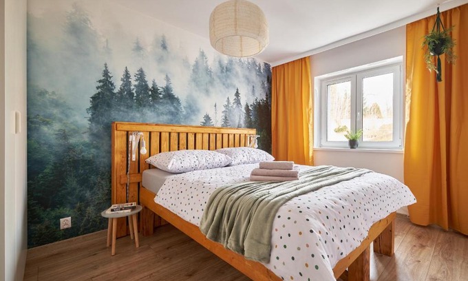 Featuring a garden, LAS I GÓRY Jedlina-Zdrój. Apartament na 5 features accommodations in Jedlina-Zdrój. Free Wifi is available throughout the property and private parking is available on site. The apartment has ski storage space. This apartment includes 1 bedroom, a living room and a flat-screen TV, an equipped kitchenette with a dining area, and 1 bathroom with a shower and a washing machine. Towels and bed linen are provided in the apartment. The property has an outdoor dining area. Guests at the apartment will be able to enjoy activities in and around Jedlina-Zdrój, like hiking and walking tours. A water park is available on-site, and both skiing and cycling can be enjoyed close to LAS I GÓRY Jedlina-Zdrój. Apartament na 5. Książ Castle is 11 miles from the accommodation, while Świdnica Cathedral is 14 miles from the property. Copernicus Wrocław Airport is 48 miles away.