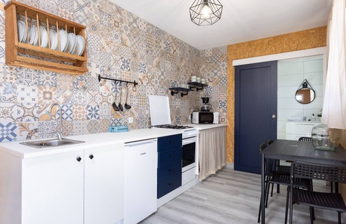 This holiday home is made up of 3 charming little houses located on a beautiful private plot. The three houses share a beautiful common outdoor area with a garden and terraces, as well as a magnificent barbecue area. The 3 are rented separately, with capacity for 2 or 3 people each. There are 3 complete studios, each with its own kitchen, dining room, living room and private bathroom. Each house has a double bed, plus an extra bed of the same size below that can be used as an extra bed if necessary. They also have a sofa, TV and Wi-Fi. All 3 houses have air conditioning. We also have a cot and high chair if needed. In short, very complete, well cared for, with beautiful details and everything you need for a unique stay.