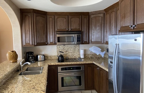 The entertainment system is set up to offer a full range of Dish Network channels including HBO, Showtime and local U.S. networks. TV's are located in the living room and both bedrooms. The system also includes an Apple TV, CD player and DVD player. Speakers are located both in the unit and on the deck so that you can listen to your favorite music as you watch the waves roll into the shore. The kitchen is fully furnished and includes all the basics along with additional appliances such as a top end blender and vacuum sealer so you can whip up a batch of margaritas as you package your freshly caught fish to take back to the States.