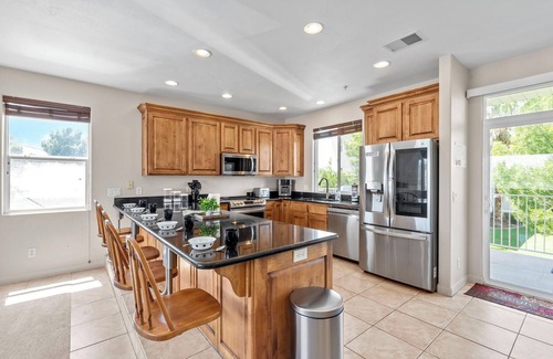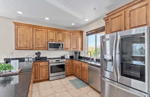 The master bedroom features a king bed and a large flat screen TV, along with a spacious ensuite bathroom. Across the hall there is 1 Twin and 1 Double bed with a TV and PS4: Jack & Jill bathroom and PS4! With games and bean bags, kids are sure to have a blast no matter what the weather is! In the living room there are two full sofa sleepers so you can surround yourself with your friends and family for your Southern Utah vacation!