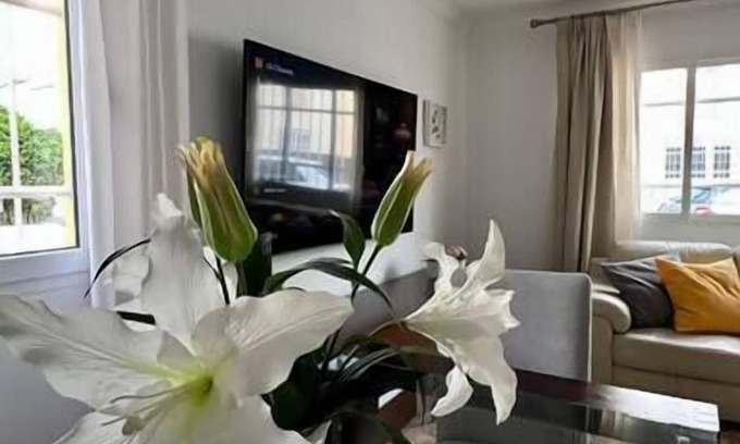 Nice corner duplex on 2 floors with 3 bedrooms, dressing room, 2 bathrooms with shower, living room, kitchen and terrace. The house has its own entrance, from where you enter directly into the living room with sofa, large TV, dining table with chairs and a small game corner with chess. Parking free of charge (subject to availability).