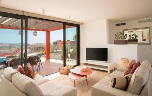 Featuring a garden, Las Terrazas Villa 3 offers accommodations in Salobre. This property offers a private pool, free Wifi, and free private parking. Outdoor seating is also available at the villa. Providing access to a balcony with mountain views, the air-conditioned villa consists of 2 bedrooms. Offering a terrace with sea views, this villa also features a satellite TV, a well-equipped kitchen with a dishwasher, an oven, and a microwave, as well as 2 bathrooms with a shower and a hair dryer. For added privacy, the accommodation features a private entrance. During warmer months, you can make use of the barbecue facilities and eat on the private patio. Guests at Las Terrazas Villa 3 will be able to enjoy activities in and around Salobre, like golfing, cycling, and hiking. Anfi Tauro Golf Course is 8.3 miles from the accommodation, while Yumbo Centrum is 11 miles from the property. Gran Canaria Airport is 26 miles away.