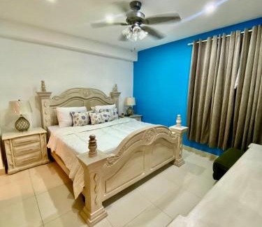 LasOlasTower JuanDolio-2Br-3Bds-7Px-WiFi-SeaView offers accommodations in Juan Dolio, a few steps from Juan Dolio and 10 miles from Estadio Tetelo Vargas. This beachfront property offers access to a balcony, free private parking, and free Wifi. The pool features a pool bar and garden views. Providing a terrace and sea views, the spacious apartment includes 2 bedrooms, a living room, flat-screen TV, an equipped kitchen, and 2 bathrooms with a hot tub and a bath. A private entrance leads guests into the apartment, where they can enjoy some wine or champagne and fruit. The property has an outdoor dining area. There is an on-site bar. For guests with children, the apartment provides a children's playground. LasOlasTower JuanDolio-2Br-3Bds-7Px-WiFi-SeaView has a garden for your convenience, along with a private beach area. The 3 Eyes National Park is 30 miles from the accommodation. Las Americas Airport is 21 miles away.
