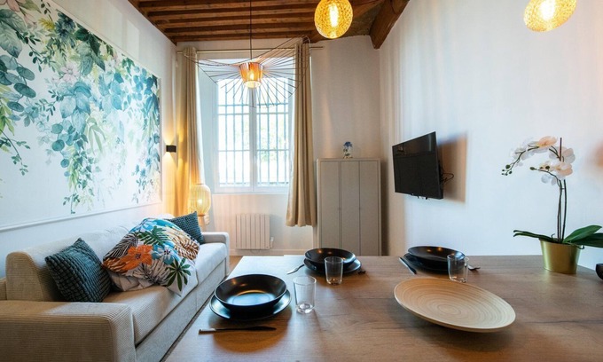 It's perfectly suited to professionals on the move or digital nomads, with a WIFI Fiber connection at your disposal. You'll also have access to a printer, and a dongle to project your computer screen onto the HD TV. Last but not least, we provide a clothes steamer/ironer, so you can get to your appointments with complete peace of mind.