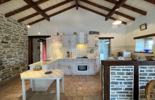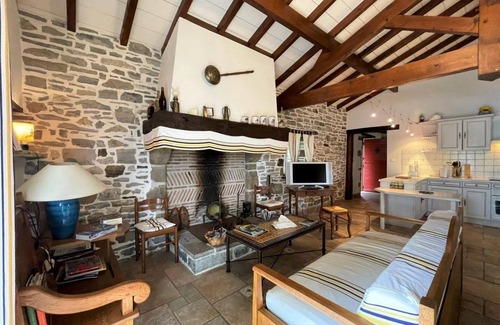 Lodging in an old independent and isolated sheepfold, where the character of the beams and stones have been carefully restored. Ground floor: Fitted kitchen (2 gas 2 glass hobs, oven and microwave, dishwasher). Living room, lounge area (TV). Laundry room (American fridge, washing machine). 1 bedroom (1 double bed) with adjoining shower room. Separate toilets. 1 cot. Floor: Relaxation area on the landing. 2 bedrooms (2 double beds). Bathroom/wc. Possibility to rent sheets and towels. Gas heating in supplement. Terrace. Garden Lounge. Barbecue. Large wooded lot (oaks, apple trees). Beautiful view of the countryside and the hills.