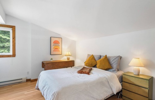 Nestled in the heart of Val-David, this charming semi-detached duplex (upper unit) awaits you for a cozy family stay. Its rustic look and indoor fireplace create a warm atmosphere from the moment you arrive.