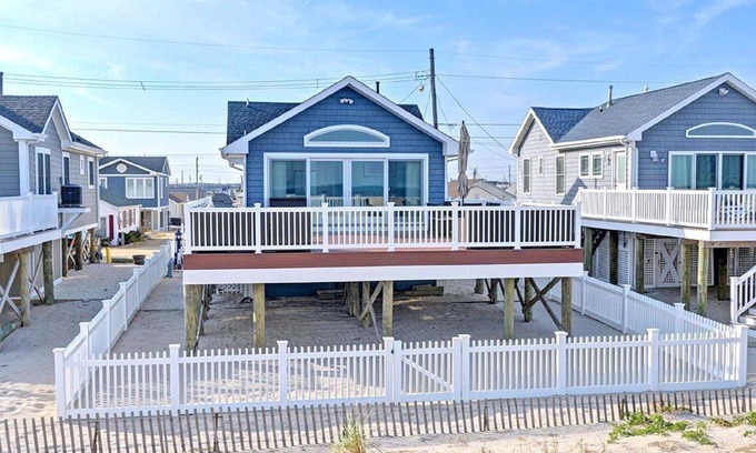 Pristine 3 bedroom, 2 bath home with views of the Atlantic Ocean. Amenities include a washer & dryer, central air, dishwasher, 4 tvs, wireless internet access, bluetooth speaker. Enjoy the large raised deck while the kids play in the fenced in sand below. The deck has outdoor furniture, 2x 8 person dining tables, oversized umbrella table and gas grill. For your convenience, fresh linens, bath towels (not beach towels) and beach chairs will be provided.