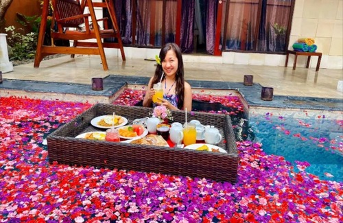 A private Pool villas which is created with traditional Balinese and old-fashioned architecture. The room is furnished with modern furnishings and balcony. Service-oriented, friendly staff pampers guests profesionally with modern facilities, personalized service in a romantic, comfortable, quiet and relaxed atmosphere. The room consists of 1 king size bed room, bathtub, shower room and toilet. The outside room has private swimming pool and garden which is spacious enough to relax and chill.