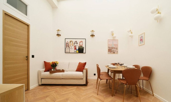 Located in the very heart of the 3rd arrondissement, right in the center of the Marais, Lavie Maison offers you this fully equipped 35m² apartment, perfect for hosting up to 6 guests. It has a hot tub and glass roof (automated ventilation, no window) Just minutes away from the Musée Carnavalet and close to the Place des Vosges, its elegant atmosphere in a historic setting makes it ideal for discovering the true Parisian spirit.