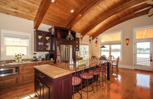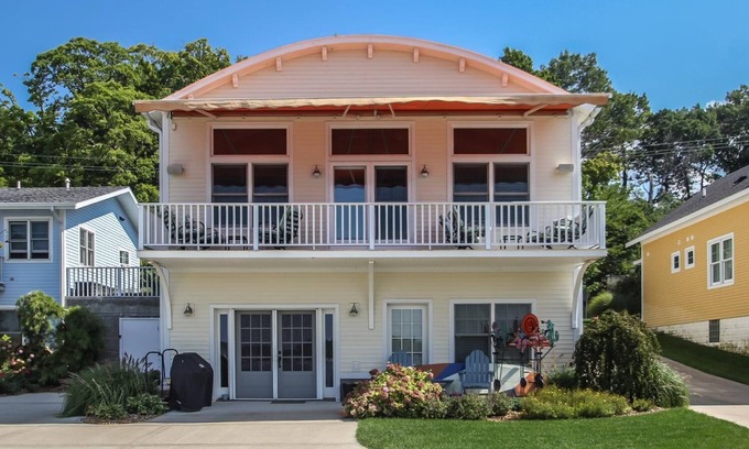 Featured on HGTV, this historical land mark is one of the favored spots in town and on Lake Kalamazoo in Saugatuck. Completely remodeled in 2005 with custom quality throughout, this home offers unique style in every room; from the tongue and groove ceilings with arched laminate beams to the creative flooring in the bathrooms, this is a must see! The home boasts 3000 square feet of space, 3 master suites and room for 10 to sleep with family entertainment in mind. Boat slips are available for use during the rental period. This unit also comes with 3 off-street parking spaces - 2 at the top and 1 below.
