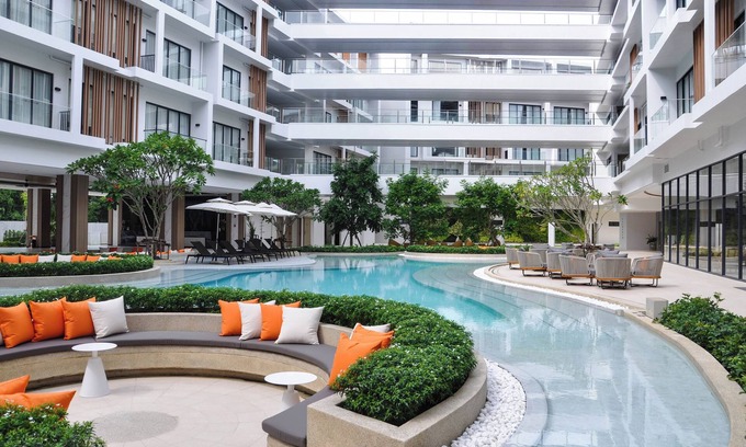 3 outdoor swimming pools are on site along with a children's pool. Other recreational amenities include a lazy river and a 24-hour fitness center.