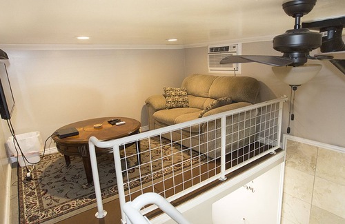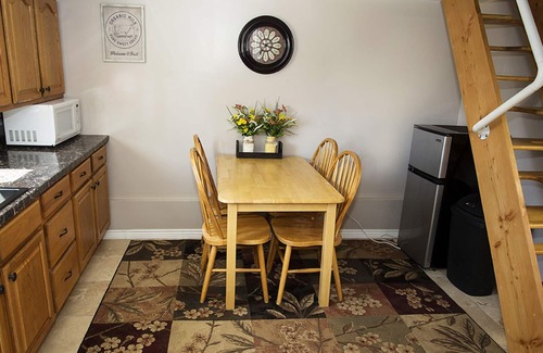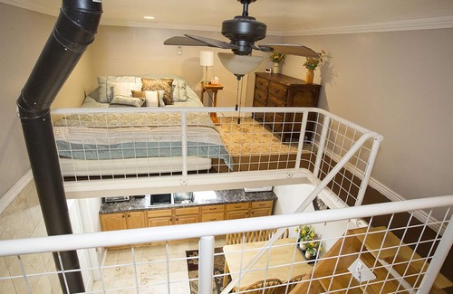 Our lofted bed and breakfast is built on the "tiny home" concept. It's cozy and private with a full standard height kitchen, stove, fridge, bathroom with a walk in shower and a 5' high lofted bedroom upstairs with a queen sized memory foam mattress and living room. There is a large flat screen TV equipped with Netflix via ROKU and free wireless internet. Perfect for up to 4 guests so if you're adventurous and can climb our "Jefferson" stairs we'll make ready for you.