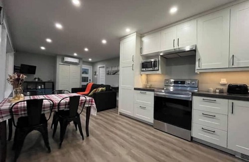 The house can accommodate 6 people with its 2 bedrooms. The house has a bathroom with washer and dryer. Large gallery with BBQ, patio set as well as an outdoor fire pit. Inside, Thermopump, TV, Wifi included. Full kitchen.