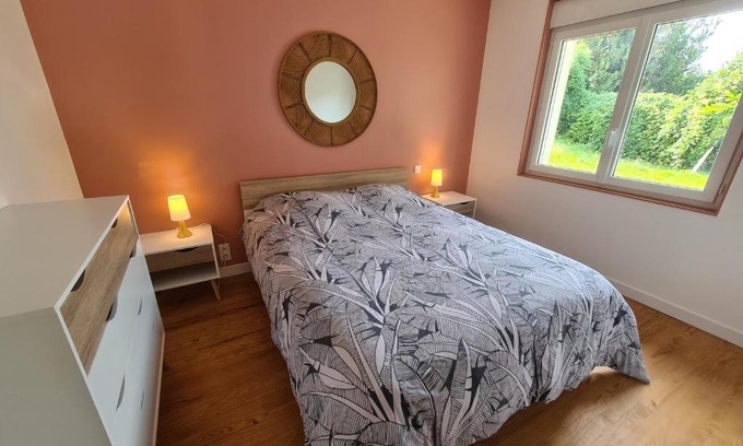 Featuring a garden, Le calme de la nature à 8 minutes des plages provides accommodations in Sémussac. This property offers access to a patio, free private parking, and free Wifi. Notre Dame Church is 5.7 miles away and Congress Center is 5.8 miles from the vacation home. Providing a terrace with quiet street views, this vacation home also offers a flat-screen TV, a well-equipped kitchen with a dishwasher, an oven, and a microwave, as well as 1 bathroom with a shower and a hair dryer. The property has an outdoor dining area. Saintes Train Station is 25 miles from the vacation home, while Royan Train Station is 4.8 miles away. La Rochelle - Île de Ré Airport is 53 miles from the property.
