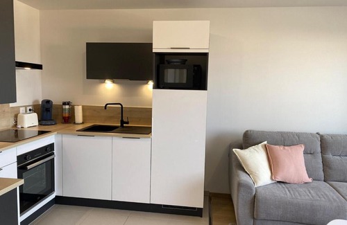 Le Carpe Diem offers accommodations in Camiers, a 7-minute walk from Sainte-Cécile Plage and 14 miles from Rang du Fliers-Verton-Berck Train Station. This property offers access to a balcony and free private parking. The apartment also offers facilities for disabled guests. The apartment is composed of 1 separate bedroom, a living room, a fully equipped kitchen, and 1 bathroom. A flat-screen TV is provided. The accommodation is non-smoking. Boulogne-sur-Mer Museum is 16 miles from the apartment, while Boulogne-sur-Mer Train Station is 16 miles away.