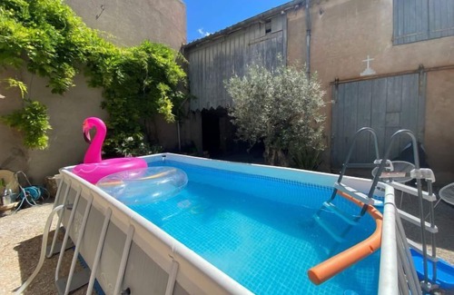 Montagnac 20 km from Marseillan Plage: Old, beautiful terraced house "Le Chai", 2 storeys, renovated in 2022. In the centre of Montagnac, excellent location: right in the centre but still quiet, 20 km from the sea, 20 km from the beach. Private: courtyard, swimming pool (above ground) (4 x 2 m, depth 100 - 100 cm, seasonal availability: 01.Jul. - 30.Sep.). Parking (limited number of spaces), public parking 100 m extra. Shop, grocery 50 m, bakery 50 m, 3 minute walk to the centre, railway station "Béziers" 33 km, sandy beach "Marseillan Plage" 20 km. Tennis 3 km, riding stable 2 km, walking paths from the house 2 km. Nearby attractions: Visites viticoles au domaine, Excursion Etang de Thau - Bouzigues 17 km, Chemins de randonnées, Montpellier 50 km, Béziers 33 km, Arles 110 km. Well-known lakes can easily be reached: Etang de Thau. Hiking paths: L'Aven du Trou du Duc, Circuit du Menhir, Les Balcons d'Alignan du vent. Please note: baby equipment on request (included). The owner does not accept any youth groups.