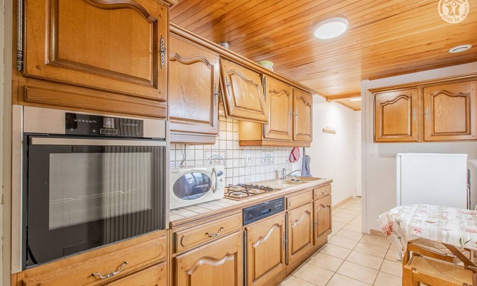 Renovated 19th century village house of the longère type, nestled on the edge of a peaceful alley within a family farm ("GAEC du Champ du Bourg") operated in "reasoned agriculture" & short circuit 100% artisanal (breeding of Charolais cows, goats, guinea fowl & poultry and cereal production / possible visit of the farm with the owners and "direct sale at the farm" at the on-site shop for the pleasure of quality and seasonal products: fresh eggs, meat, cheeses & basket of vegetables). In the heart of the countryside, in the heart of a charming little village in the Chalonnaise plain, nestled at the foot of a vast forest in the hollow of a pleasant agricultural setting of meadows & crop fields, a stone's throw from the banks of the famous "Canal du Centre" & the vast national forest of Gergy (huge "green lung" of the territory to be explored during soothing walks or mountain bike rides), very close to the hilly valleys of vines, including the famous "Val d'Or" nearby (sublime Mercurey vineyard, one of the oldest AOCs in France). Privileged location "between city & countryside", both close to Chalon-sur-Saône (all shops, services & leisure facilities) and the gentle surrounding agricultural & wine-growing countryside. Comfortable cottage with a warm & exotic country character, a bit "vintage". Very complete equipment. Large balcony-terrace (exposed & shaded as desired) overlooking the courtyard of the farm and its activities. Composition: Semi-detached village house housing an apartment available to farm staff (partly occupied during the day / well separated opposite the farmhouse). Gas central heating. Gîte on the 1st floor (independent access from the street side). Living room-kitchen-lounge (1 sofa bed 2 p. 140x190cm), 1 bedroom (bed 2 p. 140x190cm), bathroom (shower), separate WC. Private balcony-terrace. Easy public parking on the street (in front of the house). Supermarket & restaurants 4 km away. All amenities 9 km.